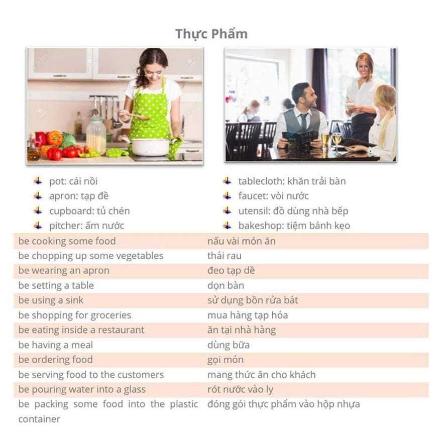 | cook | (v) | /kʊk/ | nấu ăn |
