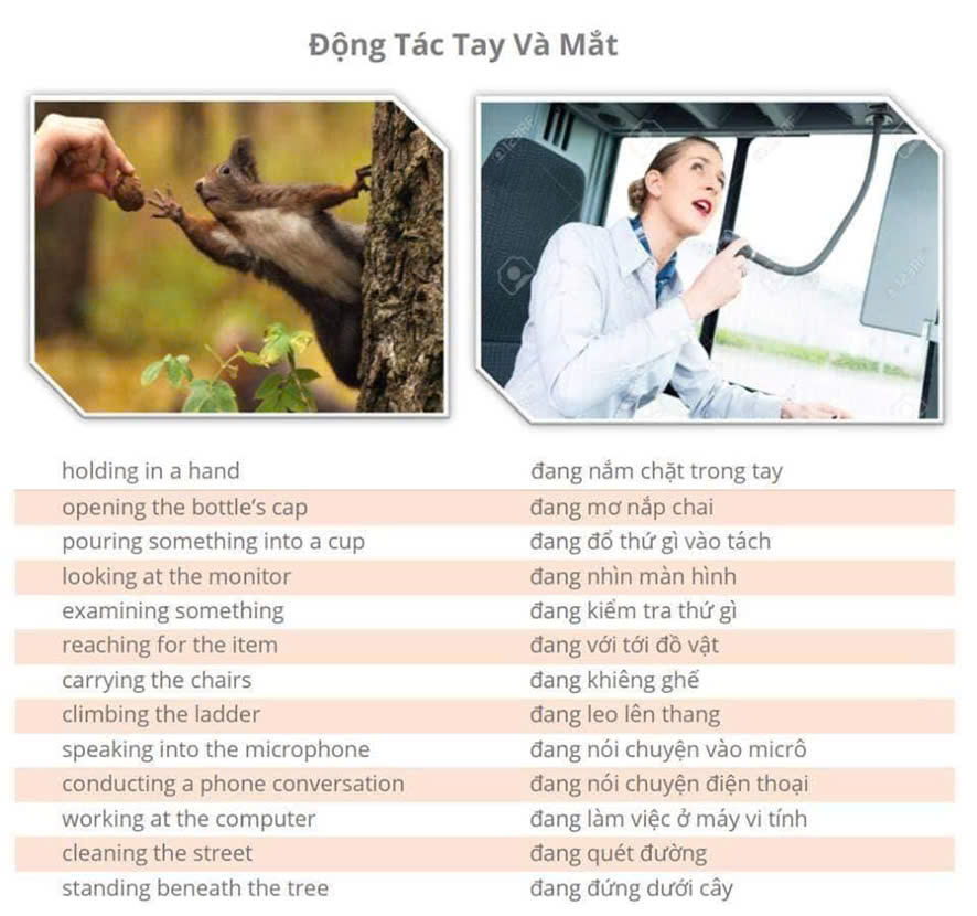 - Writing on a whiteboard: Đang viết trên bảng trắng